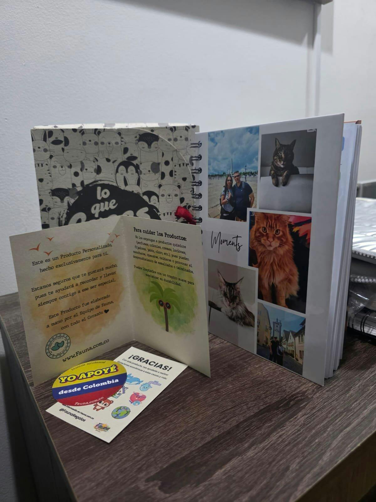 - Personalización: Agrega 2 fotos, una en la portada y otra en la contraportada